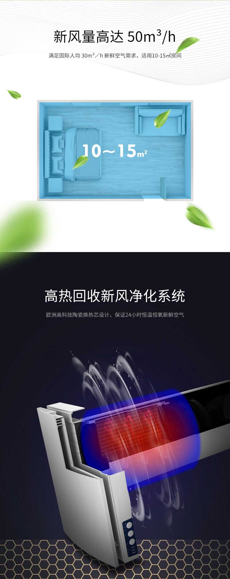 ●使用空間10-15㎡,風量50m3/h