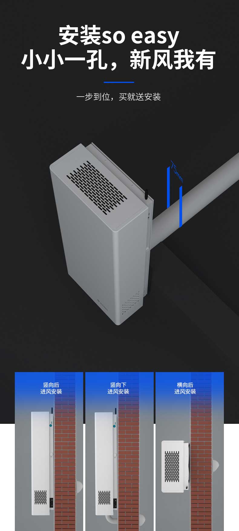 ● 歐洲技術,專為已裝修好的房子設計 ● 使用空間10-40㎡,風量150m3/h ● 荷蘭RECAIR熱換芯,實現高效能量回收 ● EC離心電機,壽命長、能耗低、運行效率高 ● 壁掛式安裝,無需吊頂,適合各類新舊房屋">